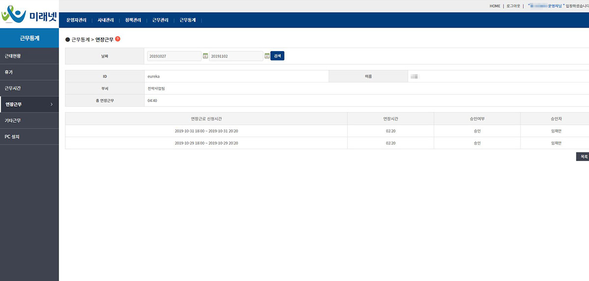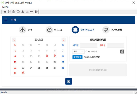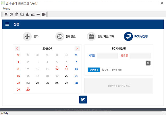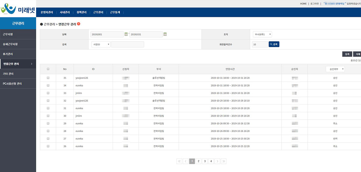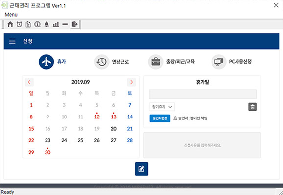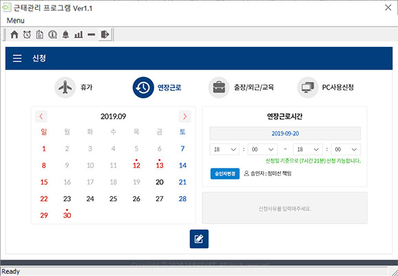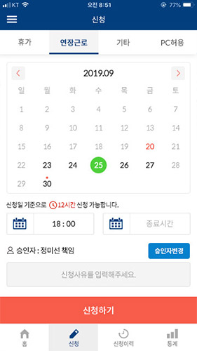 휴가, 연장근로, 기타근무시 신청을 통한 승인처리