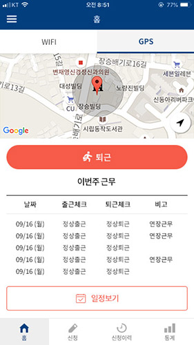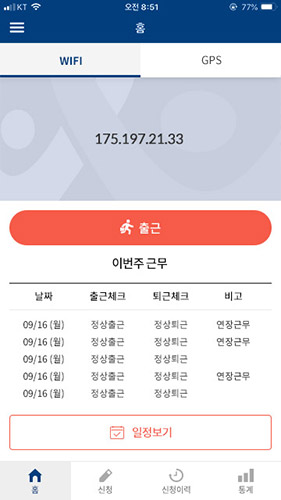 모바일앱 및 PC를 이용한 출퇴근 체크