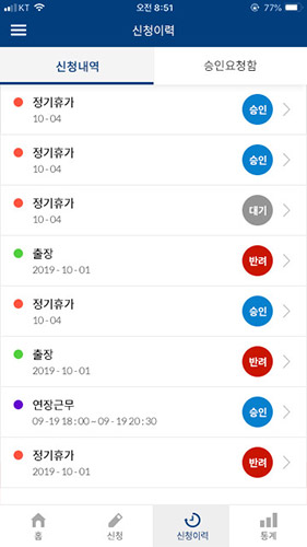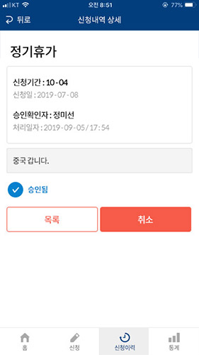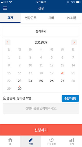 앱과 모바일에서 신청 및 승인이 가능하여 실시간으로 업무처리